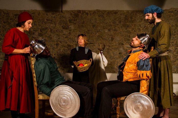 “Attraverso l’uso essenziale della parola – spiegano gli organizzatori – e del linguaggio e la fisicità dell’attore, la performance ripercorre i temi principali del romanzo: dalla dicotomia fra essere e apparire, (estremamente contemporanea se si pensa a quanto oggi l’essere sia considerato solo in rapporto alla funzione sociale che si svolge e che, quando viene meno, ci muta in inesistenti, in corazze vuote come quella del Cavalier Agilulfo), alla ricerca di sé e del percorso che l’uomo, da adolescente, compie per diventare adulto (come accade a Rambaldo, giovane che per la prima volta affronta delle prove decisive che, attraverso il filtro della guerra, lo condurranno a comprendere che il vero senso delle cose è nell’amore, nello specifico quello dell’amazzone Bradamante). Infine, la denuncia della guerra come l’attività inutile e vuota di significato per eccellenza.