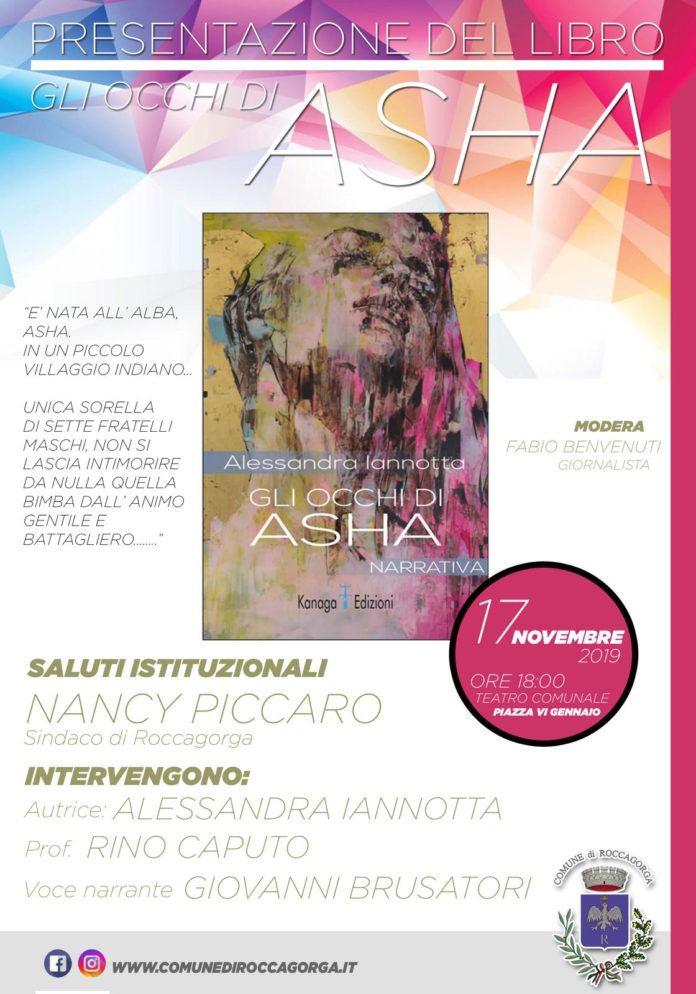 Domenica, 17 novembre a Roccagorga, la presentazione del libro di Alessandra Iannotta “Gli occhi di Asha”. L’incontro con l’autrice avrà luogo alle 18 al teatro comunale di piazza VI Gennaio.