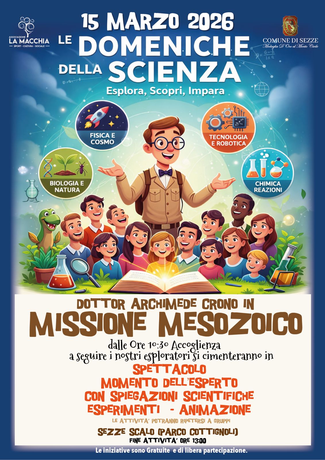 “La conoscenza è uno dei pilastri su cui abbiamo scelto di costruire il nostro mandato – ha detto il sindaco di Sezze, Lidano Lucidi – Investire nella curiosità dei bambini e dei ragazzi significa investire nel futuro della nostra comunità. Con Le Domeniche della Scienza vogliamo offrire occasioni concrete per avvicinare le nuove generazioni al sapere in modo semplice, coinvolgente e accessibile a tutti. Crediamo che una città che stimola la voglia di imparare sia una città più forte, più consapevole e più libera. Vogliamo far toccare con mano la scienza, far fare ai bambini esperimenti, incuriosirli, stimolarne la curiosità”.Il programma degli appuntamenti