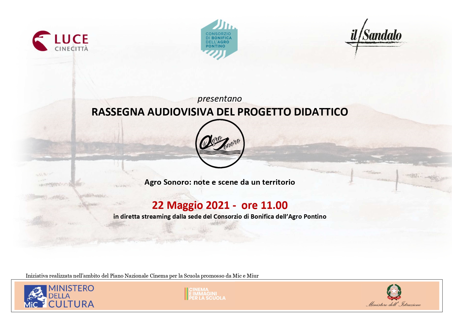 Sabato 22 maggio, alle ore 11, avrà luogo la diretta streaming del progetto finale “Agro Sonoro – note e scene da un territorio” con la rassegna di materiali audiovisivi organizzata dal Consorzio della Bonifica dell’Agro Pontino.