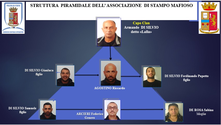 Le indagini coordinate dalla Direzione distrettuale antimafia di Roma, che hanno potato all’operazione Alba Pontina eseguita dalle Squadre Mobili di Latina e Roma e dal Servizio centrale operativo, per un totale di 250 uomini della Polizia di Stato, sono state avviate due anni fa sulla base di alcuni episodi di estorsione. Intercettazioni e riprese video e fotografiche hanno “registrato” due anni di criminalità gestita con metodo mafioso. Ma è fuori dubbio che la collaborazione del pentito Renato Pugliese, il figlio naturale di Costantino Di Silvio detto Cha Cha, è risultata utile agli inquirenti per capire i ruoli all’interno del clan capeggiato da Armando Di Silvio, più noto come Lallà. U’organizzazione, quella autoctona di Latina, a forma piramidale. Il gruppo di comando composto da padre, madre, tre figli e un genero e da un solo componente non appartenete alla famiglia, il braccio armato utilizzato per le estorsioni e il recupero crediti per conto di terzi ma anche proponente al capo una serie di “investimenti”. Nell’organizzazione le donne, le operaie della droga capeggiate dalla moglie di Lallà, Sabina Di Rosa. Tra le “operaie”, Angela Di Silvio, compagna di Federico Di Silvio, figlio del boss e facente parte del gruppo di comando, Francesca De Rosa, compagna di Gian Luca Di Silvio, altro figlio del capo clan, Giulia Di Silvio, compagna di Samiele Di Silvio, sempre del gruppo di comando, e Sara Genoeffa Di Silvio, compagna di Federico Arcieri anche lui tra i più stretti collaboratori di Armando Di Silvio. Alla vendita della droga nelle piazze di Latina, in particolare quartiere dei pub e Latina Scalo, secondo gli inquirenti, provvedevano i “sodali dello spaccio” i cui nomi sono visibili nell’ottava slide del video.