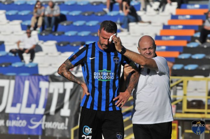 Dopo un quarto d’ora Latina costretto al cambio, ferita al sopracciglio per Esposito, sostituito da Cortinovis. Al 18’ punizione di Di Paolantonio, sveta Rossi, Cardinali mette in angolo. Per il salentino sette punti di sutura. Al 26’ la punizione mancina di Cancellieri attraversa l’area, grosso rischio per il Latina, nessun avversario però interviene al momento giusto sulla traiettoria. Al 27’ pallone d’oro di Paolantonio sul seocndo palo per Verde, colpo di testa respinta d’istinto da Cardinali, poi travolto da Rossi, che ha la peggio, per lui la partita finisce in anticipo. Dentro Santarpia.