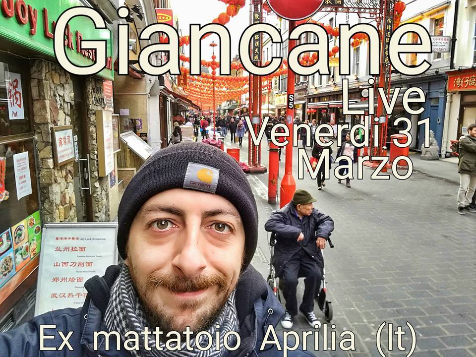 Un’ironia tagliente, testi duri e diretti che finiscono per mettere in scena il peggio della società contemporanea. All’ex Mattatoio di Aprilia sbarca la musica folk rock di Giancane. Venerdì 31 marzo, a partire dalle 22.30 il cantautore romano si esibirà sul palco del circolo locale Arci La Freccia. Giancarlo Barbati all’anagrafe, cresce nel quartiere romano di Monteverde e si affaccia sul palcoscenico musicale come chitarrista del gruppo capitolino “Il Muro del Canto”. Esordisce da solista con Carne, primo Ep del musicista uscito nel 2013 e distribuito nei negozi di dischi impacchettato proprio con la vaschetta che trovate nei supermercati al bancone della carne, già a dimostrazione della conformazione ironica delle sue canzoni. Il 20 novembre 2015 esce per Goodfellas il suo primo album completo: Una vita al Top. Il disco si muove su un country definito neomelodico, con chitarra saldamente rock’n’roll e richiami folk, e vanta la collaborazione di numerosi artisti indipendenti quali Giovanni Truppi e Matteo Gabbianelli dei KuTso. La genuinità e l’estraneità a certe logiche di mercato saltano immediatamente all’occhio rendendo impossibile non apprezzare questo menestrello versatile e provocatore. “Stiamo sulla stessa barca io e te” cantava Rino Gaetano, ed è proprio la sensazione di viaggiare sulla stessa lunghezza d’onda quella che riuscirà a trasmettervi con la sua pungente ironia; criticando, biasimando e contestando con violente invettive e beffarda disillusione la vita reale.