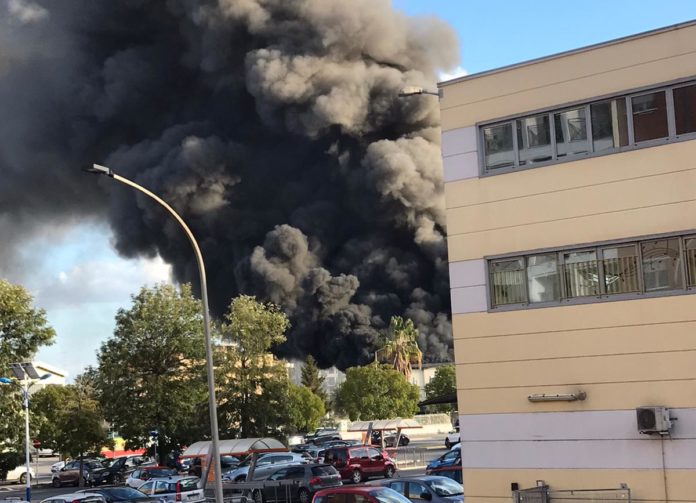 Un imponente incendio si è verificato nelle prime ore di questo pomeriggio ad Aprilia, le fiamme hanno colpito un capannone tra via Enna, via Toscanini e via Caltanissetta e dalle prime informazioni sembrerebbe che le lamiere del capannone siano ricoperte di amianto.