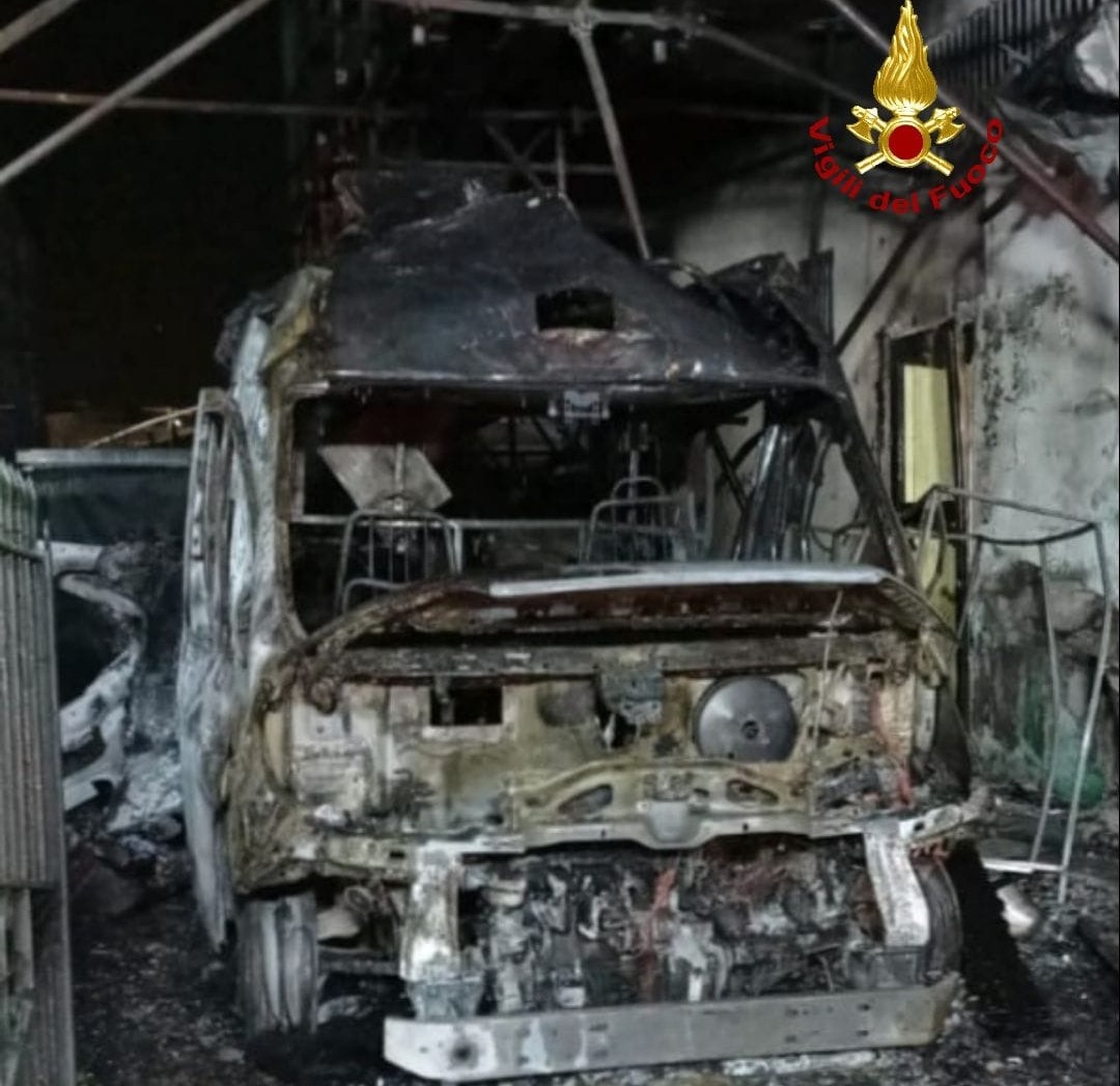 L’intervento dei Vigili del Fuoco è stato immediato, e le fiamme prontamente domate, rivelando poi quello che ne rimaneva dell’ambulanza.