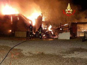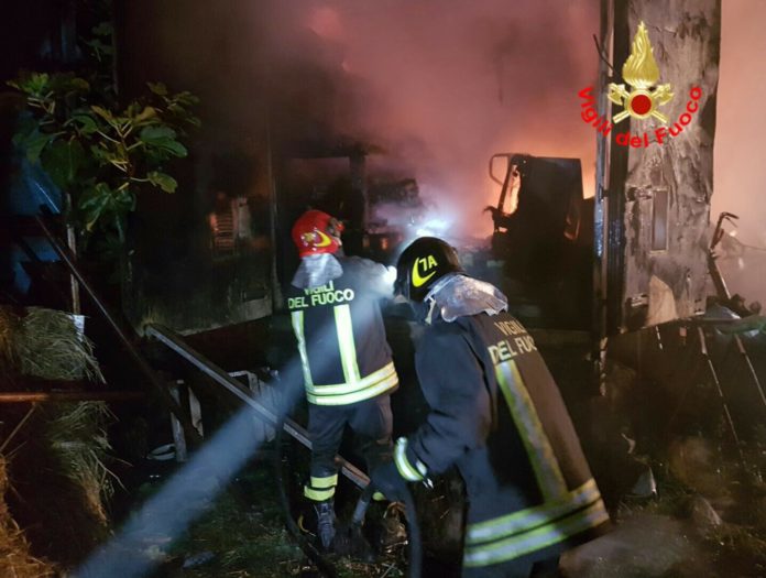 Un grosso rogo è divampato nella notte un’azienda agricola sita in via Fossignano ad Aprilia. L’allarme è scattato intorno alle 3,30, attraverso una segnalazione telefonica al 112, numero unico per le emergenze. I primi a mobilitarsi per far fronte all’emergenza, sono stati i Vigili del Fuoco della sede di Aprilia che si sono precipitati tempestivamente sul posto. Gli operatori VF , una volta in loco, hanno preso atto che, che all’interno di una azienda agricola, un rimorchio, adibito a magazzino con all’interno attrezzature meccaniche di vario tipo, era completamente avvolto dalle fiamme. Il rogo stava interessato anche una piccola stalla. Subito hanno avuto inizio le operazioni di spegnimento anche con l’ausilio di una autobotte VVF proveniente da Latina. Successivamente l’ufficiale di Polizia Giudiziaria dei Vigili del Fuoco effettuava un accurato controllo della scena per cercare di risalire alle cause che, a causa del rogo generalizzato, non si sono potute accertare.