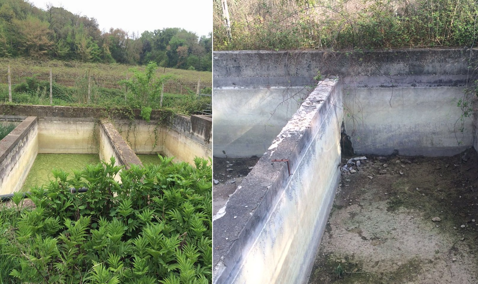 Le impronte sul terreno sono quelle tipiche dei mezzi cingolati, le sponde del canale rastrellate e le vasche del vecchio depuratore completamente vuote, la fonte interrata. Qui c’è stato qualcuno e anche di recente.