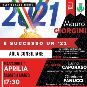 Ad Aprilia, sabato 4 marzo 2023, all’interno della sala consiliare “Luigi Meddi” alle ore 17:30, verrà presentato il libro “È successo un ‘21” di Mauro Giorgini.