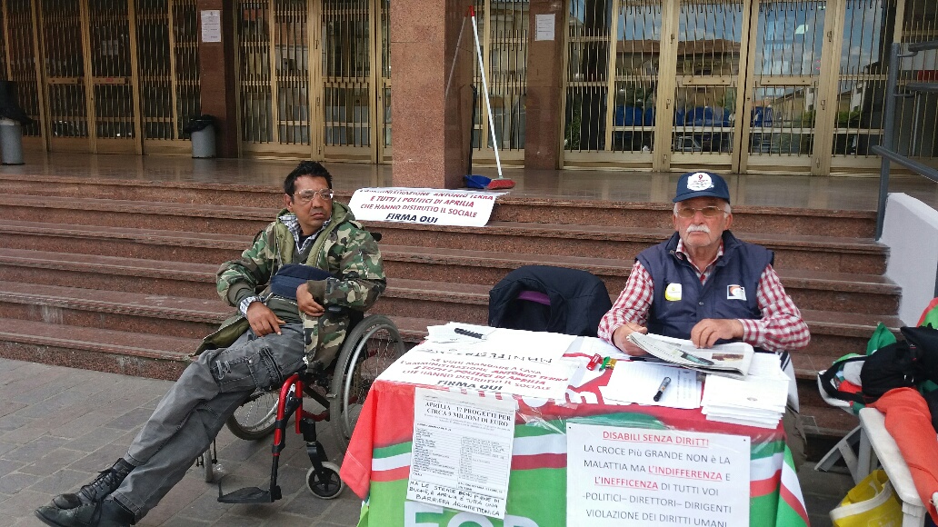 Prosegue senza sosta la protesta sotto al Comune di Aprilia di Donatella Coccia, sostenuta dal Movimento 9 dicembre, una manifestazione iniziata ieri mattina e che proseguirà a oltranza, notte e giorno. L’obiettivo è quello di chiedere il diritto all’assistenza e l’ingresso all’interno del Giardino dei sorrisi non solo per il fratello Massimo ma per tutti i disabili di Aprilia. A rafforzare la battaglia di Donatella una raccolta firme per chiedere le dimissioni del sindaco Antonio Terra alla luce delle carenze che la signora Coccia, con due disabili in casa, ha riscontrato nel settore dei servizi sociali. Un sit in per portare alla luce sprechi di denaro e carenze della pubblica amministrazione, non solo nel caso specifico ma in generale. Alle parole durissime espresse da Donatella, l’amministrazione risponde attraverso una nota stampa. “Con riferimento alla protesta inscenata dalla signora Coccia- si legge nella nota-  per i presunti mancati interventi socio-assistenziali del Comune di Aprilia a sostegno di un suo parente diversamente abile, e alle conseguenti polemiche diffuse a mezzo stampa, l’Amministrazione Comunale precisa quanto segue. Allo stato, il centro diurno denominato Il Giardino dei Sorrisi, gestito dalla Multiservizi, accoglie quaranta ospiti diversamente abili, con l’ultimo assorbimento completo della graduatoria avvenuto nel 2013. Attualmente in lista d’attesa figurano dieci richieste e la Multiservizi a breve garantirà la possibilità di accogliere in struttura quattro o cinque ulteriori unità. Nel caso specifico, il signor Coccia pur essendo idoneo all’accesso al Giardino dei Sorrisi non figura tra i primi posti in graduatoria. Nelle more del totale assorbimento della lista d’attesa, i Servizi Sociali e l’Asl hanno suggerito il ricovero in una Residenza Assistenziale Sanitaria (RSA) e il Comune di Aprilia ha offerto alla famiglia la compartecipazione delle spese. Questa soluzione è stata rifiutata dalla stessa famiglia. L’Amministrazione anche se rammaricata per questa protesta che ritiene ingiustificata e, soprattutto, orientata scavalcare e negare diritti altrui, si dice disponibile ad ogni soluzione percorribile. Va ancora precisato che il soggetto diversamente abile usufruisce dei benefici economici previsti dalla Legge 162 per il sostentamento di persone con gravi disabilità, ai quali l’Amministrazione Comunale contribuisce con una somma ulteriore rispetto a quanto già previsto ed erogato dalla Regione Lazio. Oltre a ciò, il soggetto in questione usufruisce di piano assistenza erogata gratuitamente dal Servizio di Assistenza Domiciliare Integrata (ADI) e infine dal Servizio di Assistenza Domiciliare (SAD). Per questo motivo, l’Amministrazione respinge al mittente ogni accusa di politiche sociali fallimentari e scarsa attenzione ai bisogni delle fasce più deboli”. Per tutta risposta Donatella ribadisce la sua posizione. “Non me ne andrò- afferma- finchè i disabili non riceveranno l’assistenza a cui hanno diritto. Tutti. Nessuno escluso. Non sono i nostri figli a dover essere adeguati al Giardino dei Sorrisi, ma la struttura deve essere adeguata per accogliere i nostri figli malati”.