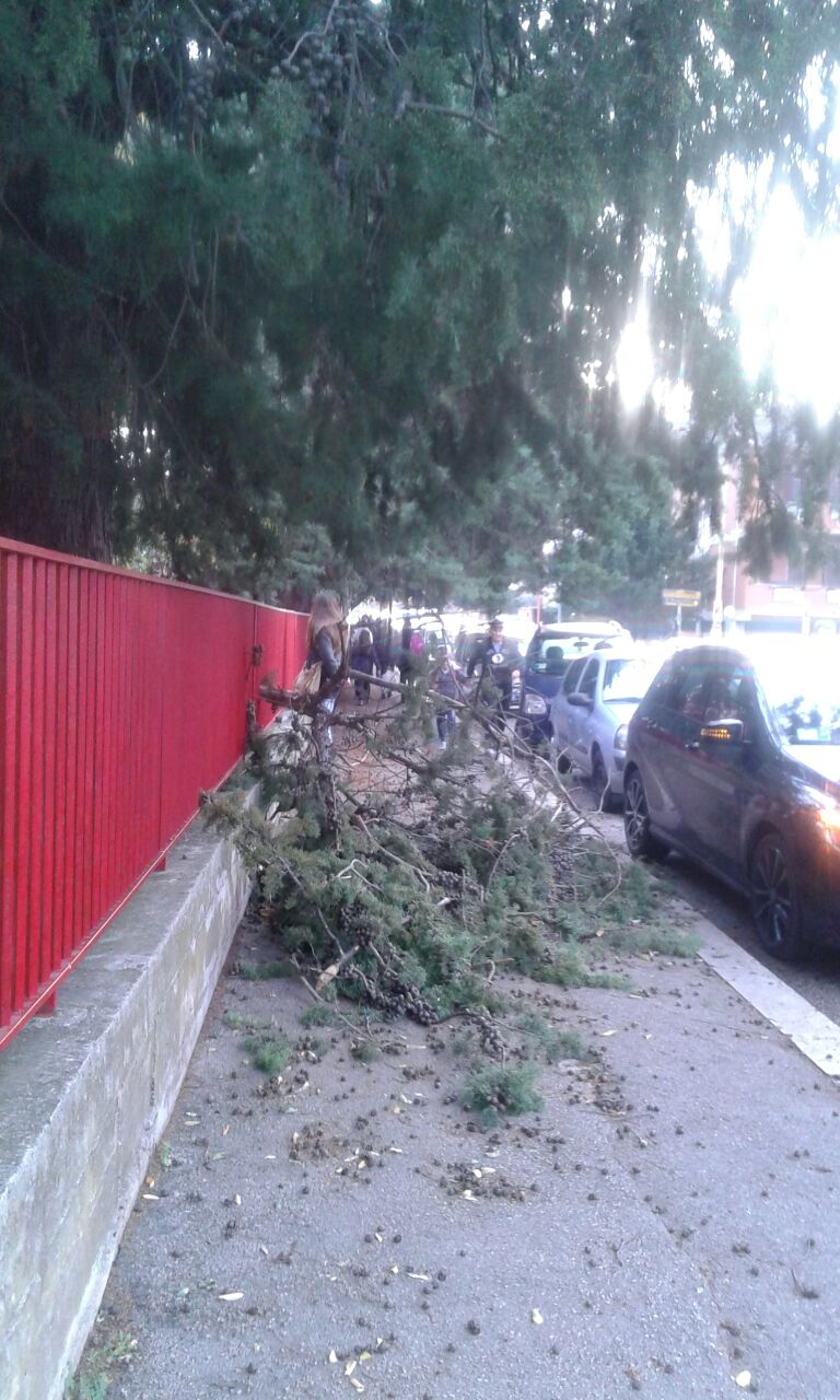 Aprilia, rami spezzati e pericolanti all’esterno della scuola Montegrappa