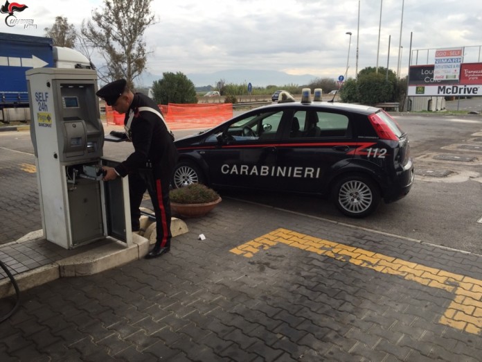 In tre, muniti di attrezzi da scasso, hanno divelto gli accettatori di banconote presso il distributore automatico di carburante “I.P.” di Campoverde, nei pressi del Mc Donald, prelevando banconote per il valore di diverse centinaia di euro. L’episodio si è consumato la notte scorsa. I tre uomini stavano armeggiando presso le colonnine del distributore con un’asta dotata di punta adesiva, nel tentativo di pescare le banconote contenute all’interno, quando sono stati sorpresi dai carabinieri del reparto territoriale, impegnati nelle operazioni di controllo del territorio. A finire in manette, con l’accusa di furto aggravato in concorso, N.C.A di 23 anni e G,A,G di 24 anni, entrambi di nazionalità rumena. I due stranieri sono stati trattenuti nelle camere di sicurezza in attesa della celebrazione del giudizio con rito per direttissima. I militari della stazione di via Tiberio sono ora sulle tracce del complice, che sarebbe riuscito a fuggire.