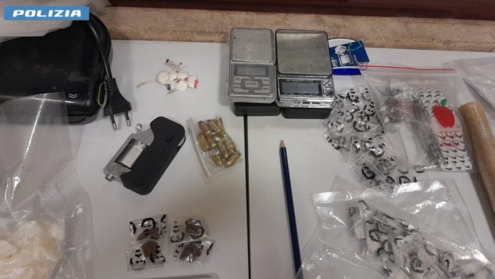 L’operazione è scattata nell’ambito dei servizi di controllo del territorio e di contrasto allo spaccio. Il primo intervento ha visto gli agenti della Squadra Volante fermare un’autovettura con a bordo uno dei due giovani, che dopo aver fornito false generalità ha tentato la fuga a piedi. Durante l’inseguimento il ragazzo ha lasciato cadere un oggetto metallico, poi risultato essere una pistola di tipo revolver, provento di furto, con due proiettili all’interno.