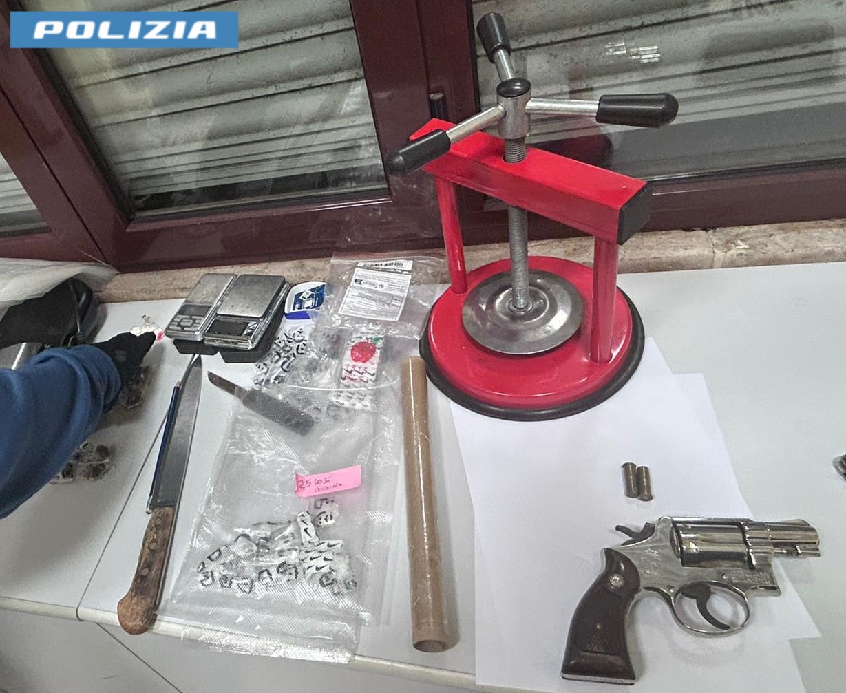 Nel corso degli accertamenti è stato inoltre trovato un secondo mazzo di chiavi, risultato riconducibile all’abitazione dell’altro diciottenne, già notato dagli investigatori della Squadra Mobile in compagnia del primo arrestato. La perquisizione estesa anche a questo appartamento ha portato al rinvenimento di un mini revolver privo di segni identificativi, circa 1,1 chili di hashish, 350 grammi di cocaina e crack, 600 euro in contanti e materiale per il confezionamento della droga. Alla luce degli elementi raccolti, entrambi i giovani sono stati arrestati e condotti in carcere, su disposizione dell’Autorità Giudiziaria, in attesa dell’udienza di convalida.