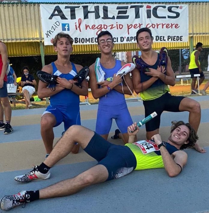 Importantissimo sigillo anche per la staffetta 4×400 under 18 che con Andrea Terriaca, Davide Zuliani, Leonardo Adabbo e Mario Roani ferma i crono a 3’32” nuovo record provinciale e seconda prestazione nazionale dell’anno.