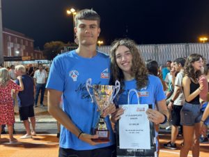 “Non mi aspettavo che questa squadra così giovane e un allenatore molto giovane potessero vincere il torneo. Ho solo tre anni in più rispetto ai ragazzi (nel roaster c’è anche il fratello Riccardo) e all’inizio pensavo che sarebbe stata molto difficile. Invece sin dalla prima partita ho visto un vero gruppo, quasi una famiglia e alla fine ce l’abbiamo fatta. Un gruppo formato da giocatori e giocatrici di Latina e due da Itri. Ci siamo aiutati gli con gli altri. Un’ emozione fantastica vincere nella tua città, di fronte a tanta gente che ti conosce”. Oltre ad essere coach di New Age Erborist, Lorenzo Colarullo da due anni è protagonista del torneo Senior, con Farmacia Isonzo: “Ancora mi rode aver perso la finale lo scorso anno (sorride)”. Cercherà di rifarsi stasera nella finale per il 3°/4° posto, perché l’avversario sarà sempre Benacquista.