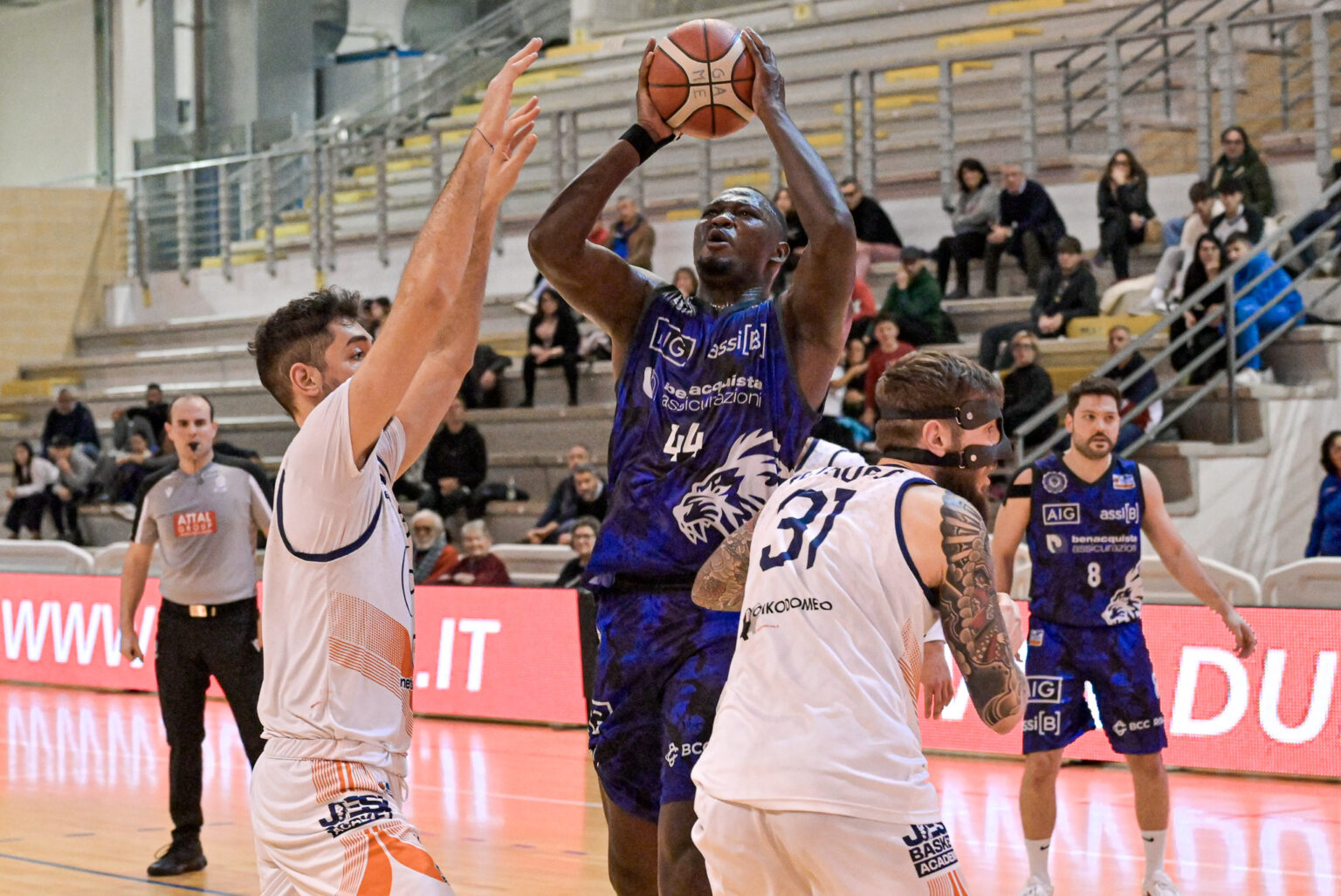 Non basta una prestazione di carattere alla Benacquista Assicurazioni Latina Basket per avere la meglio su Jesi. Dopo un primo tempo ben giocato e chiuso in vantaggio, i nerazzurri subiscono il ritorno degli ospiti nel terzo quarto e, nonostante una buona reazione, non riescono a completare la rimonta nei minuti finali.