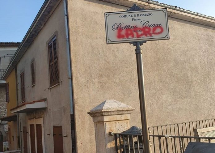 Imbrattata con la vernice rossa la targa di Bettino Craxi a Bassiano. A stigmatizzare l’accaduto nel paese dei Monti Lepini il sindaco Domenico Guidi: “Un atto di inciviltà, di vandalismo e di offesa al decoro pubblico. Un gesto contro un uomo che oggi viene universalmente riconosciuto come grande statista di cui in questo momento avremmo estremo bisogno. Un gesto che offende una popolazione socialista e democratica aperta e solidale e che ha riconosciuto in Craxi un leader indiscusso”.
