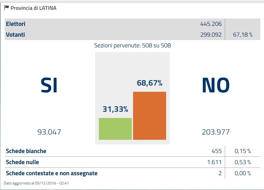 Il risultato definitivo in provincia di Latina: a sinistra scegliere, sotto la cartina, il comune