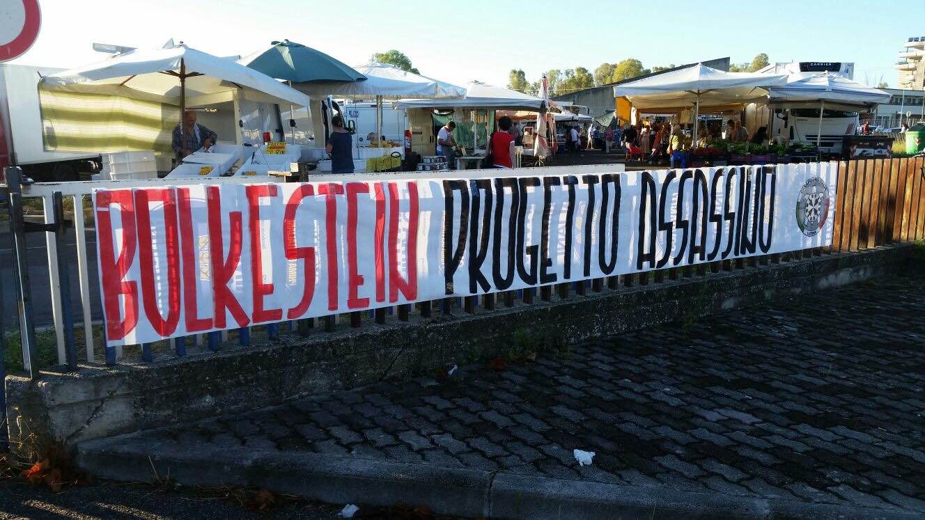 Sono stati esposti nell’area del mercato all’aperto due striscioni dal testo inequivocabile “Bolkestein Progetto Assassino” da parte dei militanti di CasaPound Latina.