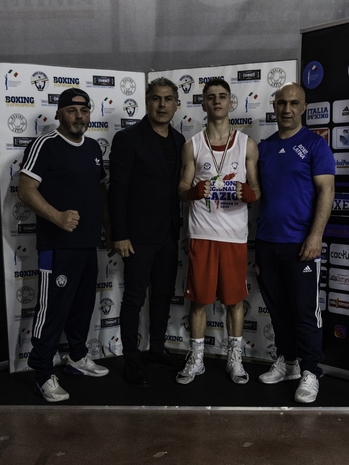 Questo il quadro completo dei pugili che si sono laureati campioni regionali sul ring della Boxe Latina: kg 50 Matteo Alberico (Accademia Pugilistica Viterbese), kg 55 Samuele Fusco (Sparta Pugilato), kg 60 Mattia Turrin (Boxe Latina), kg 65 Domenico Pofi (Life Center), kg 70 Matteo Borbone (Gym Boxe Setteville Nord), kg 75 Ayrton Emanuele Martucci (Pugilistica Venus), kg 80 Denis Cherciu (Monte Verde Boxe), kg 85 Tiziano Sordini (Sordini Boxe Fiumicino), kg 90 Aharon Corona (Phoenix Gym), kg 90+ Alessio Parisi (Parisi Boxe).
