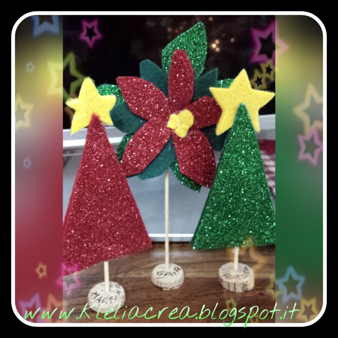 Basteranno un paio d’ore , i bastoncini per gli spiedini , del feltro già glitterato e qualche tappo di sughero.
