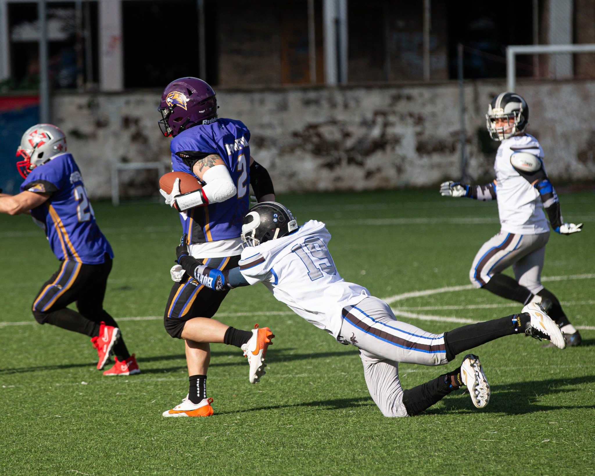 Con diversi esordienti e giocatori adattati fuori ruolo, i Buffalos provano a contenere la pressione dei Falcons, ma la “valanga viola” prende il largo. Nel finale, con orgoglio, alcuni acciaccati rientrano in campo permettendo alla squadra di segnare il touchdown della bandiera, che rende meno pesante il passivo.