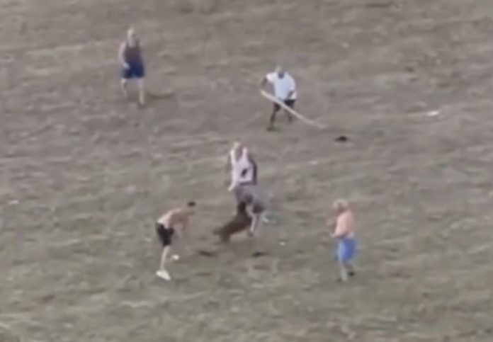 Immediatamente si è compresa la gravità della situazione ed altre due persone sono intervenute per sedare la rabbia del molosso, colpendolo con bastoni e rami trovati nei dintorni. Il mastiff non si è fermato, ha azzannato tutti e tre gli uomini che cercavano di immobilizzarlo ferendoli anche in modo abbastanza serio.