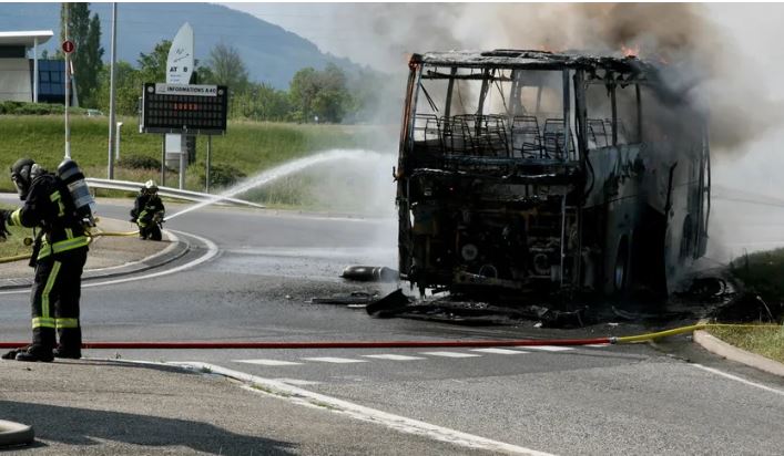 Erano le 9.30 di ieri mattina quando – come riporta Il Messaggero – il rogo, che si è sviluppato nel motore, ha raggiunto l’abitacolo. Il panico si è diffuso tra i passeggeri, che hanno creduto di restare intrappolati nel veicolo senza via di scampo. Invece l’autista non ha perso la calma e in pochi secondi ha attivato i sistemi di sicurezza, riuscendo a mettere in salvo tutti. Tutto è avvenuto sulla strada RD1201 all’entrata dell’autostrada, nel comune di Saint-Julien-en-Genevois.