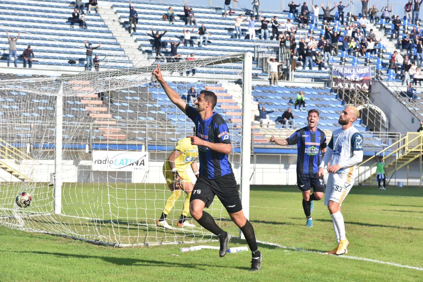 Al Francioni decide Jefferson, servito da Tessiore, incornata alla sua maniera al 37′ del primo tempo. Prima del fischio d’inizio il saluto della Nord ad un ex sempre amato come Bobo Pilleddu e presente per l’occasione alo stadio. Il vantaggio del 37′ è stato lo spartiacque in positivo di una partita che il Latina aveva iniziato in sordina, lasciando campo a manovra alla Fidelis.