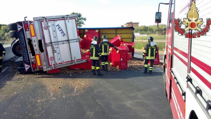 Incidente stradale questo pomeriggio al chilometro 43+800 della strada regionale Pontina: un camion che percorreva la 148 in direzione Nord, per cause in corso di accertamento da parte della Polizia stradale, si è ribaltato perdendo il suo carino di kiwi. Sul posto si è reso necessario l’intervento della squadra 7 A dei vigili del fuoco del distaccamento di Aprilia. La corsia Nord è stata chiusa al traffico per consentire il ripristino della condizioni di sicurezza.