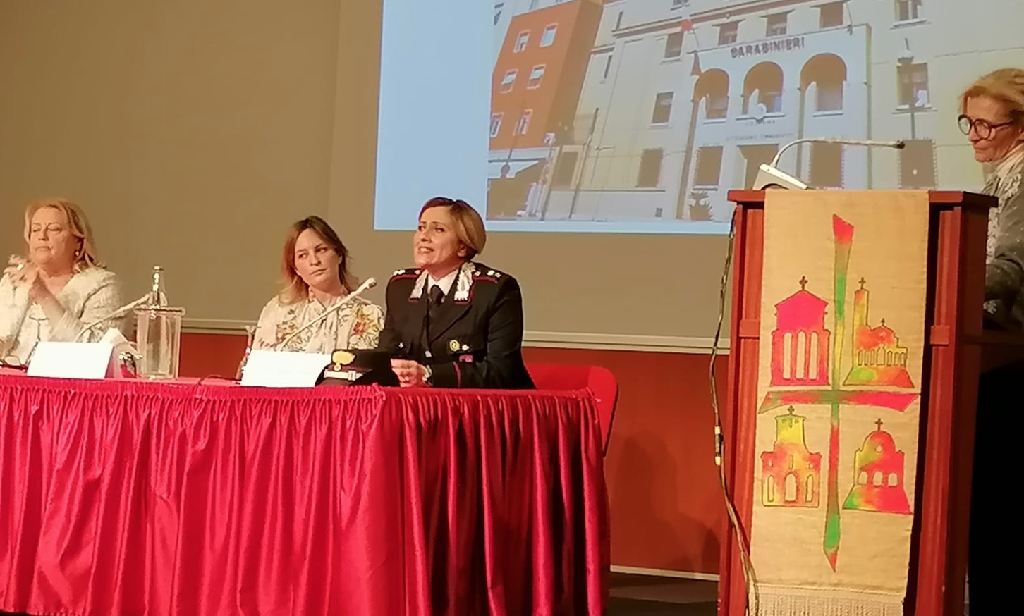 Tra i conferenzieri, oltre al Ten. Monica Loforese, comandante del Nucleo Operativo e Radiomobile di Latina, c’erano la psicologa dott.ssa Irene Fucsia e la dott.ssa Chiara Sanseverino del “Centro Donna Lilith” di Latina.