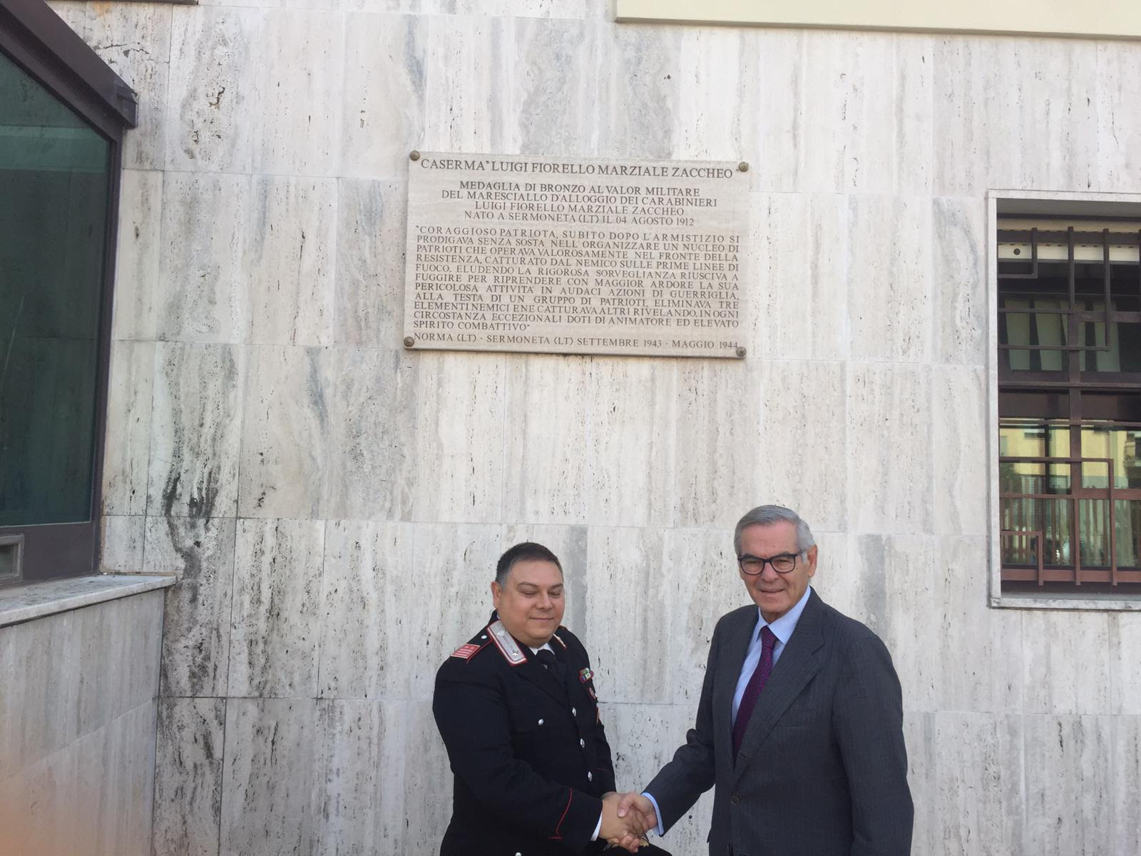 La caserma dei carabinieri è stata intitolata a Luigi Zaccheo nel 2008, durante il raduno nazionale dei Carabinieri. “Il presidente nazionale dell’associazione dell’Arma dei carabinieri ha voluto ricordare una figura esemplare della nostra comunità come mio padre”, ha sottolineato suo figlio Vincenzo questa mattina ad Aprilia dove si è recato soprattutto per condannare fermamente quanto avvenuto per le strade della città e le gravi minacce ricevute da uno degli uomini in servizio.