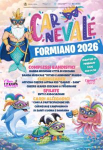 Il programma del Carnevale di Formia 2026 è promosso dall’Amministrazione Comunale di Formia, guidata dal Sindaco Gianluca Taddeo, in sinergia con la Pro Loco Città di Formia, con il sostegno della Camera di Commercio Frosinone Latina e della sua Azienda Speciale Informare.