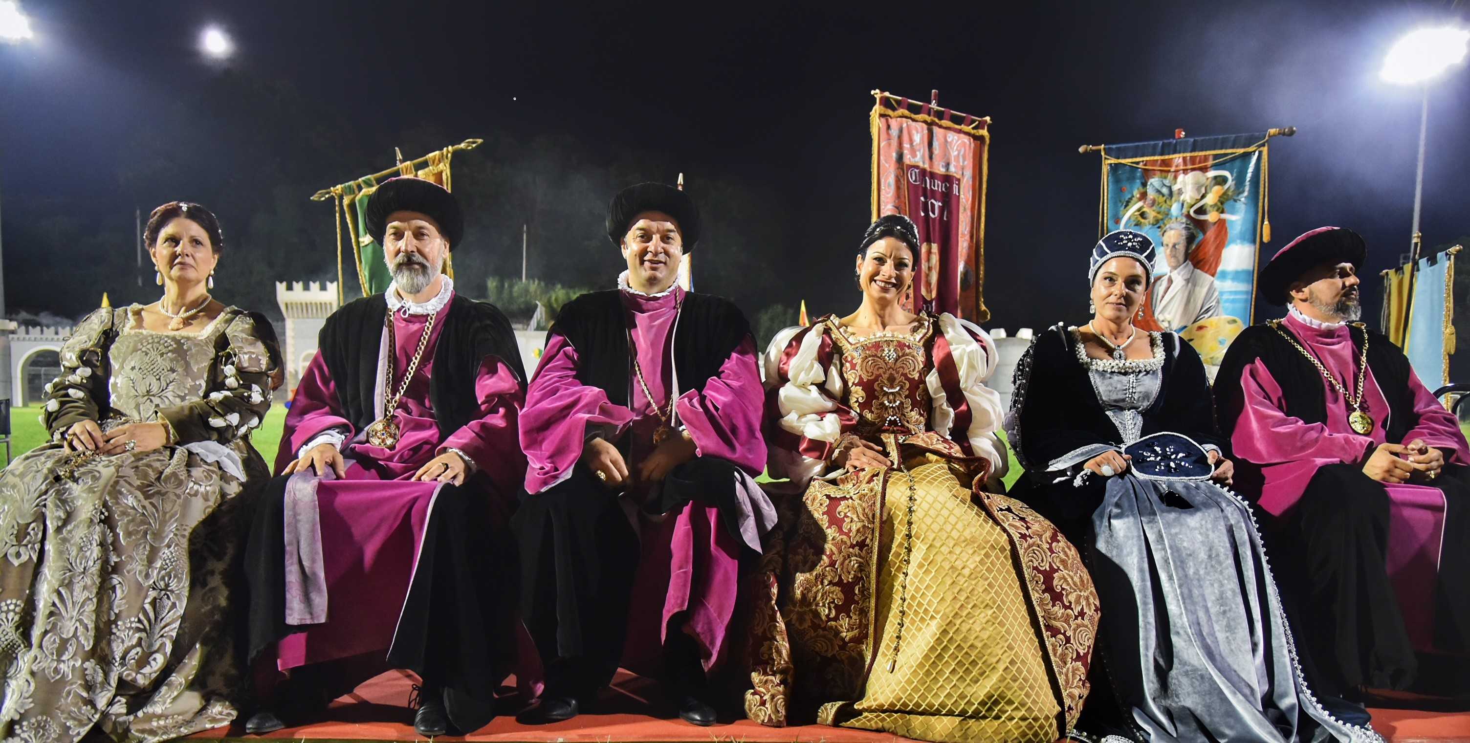Prima della disputa del torneo il corteo in abiti rinascimentali ha percorso il centro storico della città partendo da piazza Signina e arrivando al campo di gara di Stoza.