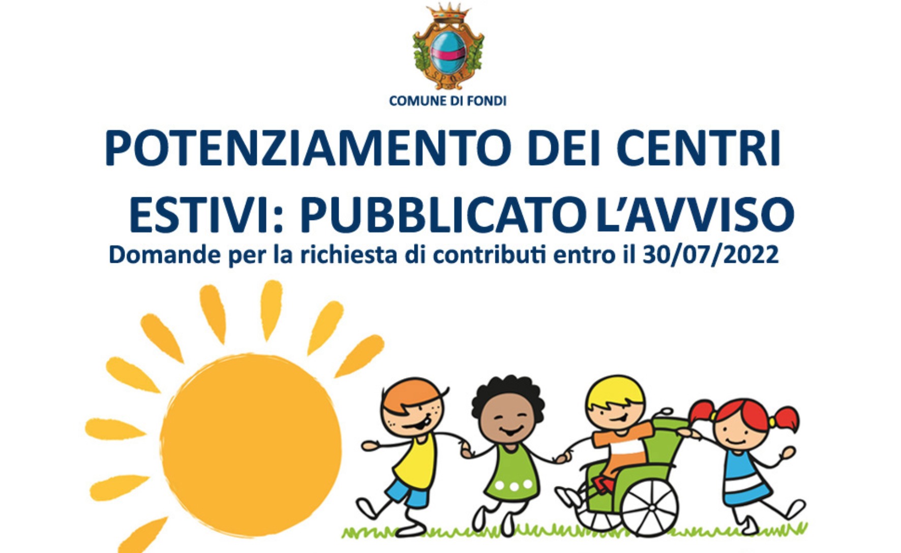 È stato pubblicato sul sito del Comune di Fondi il bando per l’assegnazione dei contributi per il potenziamento dei centri estivi.