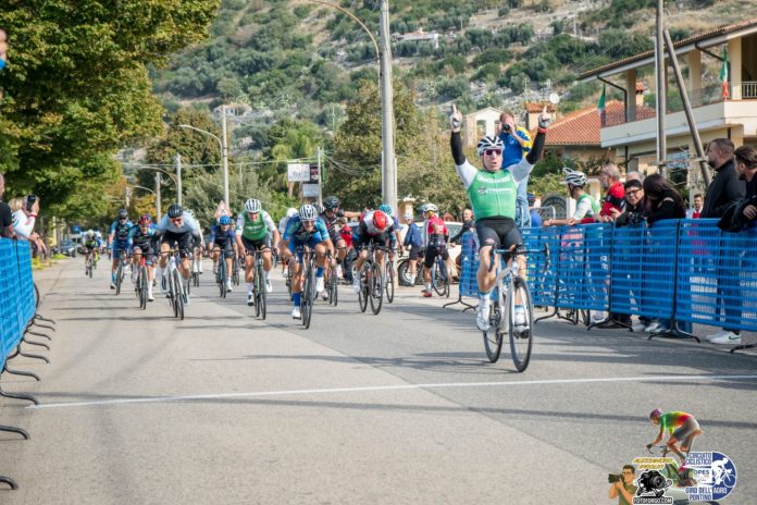 Gara condotta sempre ad una velocità costante con qualche sporadico tentativo di fuga, ma senza successo. Le squadre si sono controllate tra di loro perché la gara era l’ultima occasione stagionale per i tanti velocisti presenti ed ognuna voleva portare il proprio a disputare lo sprint finale. E cosi è stato e ad avere la meglio è stato Enrico Raponi della Asd Drago On Bike che batteva Conte Giuseppe del Team Morichini Campion e Sarrecchia Gianluca, anche lui della Asd Drago On Bike.