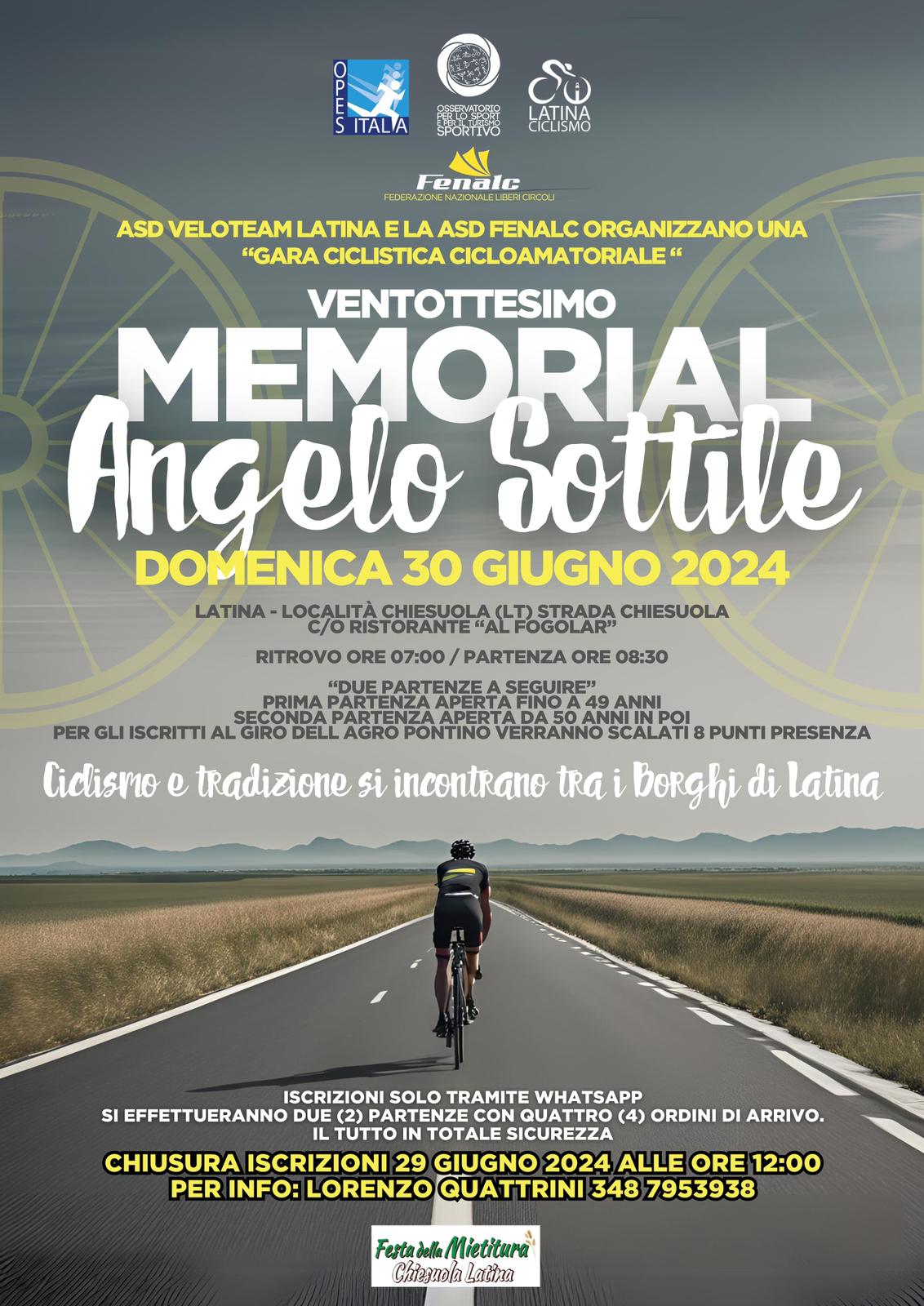 Domenica 30 giugno si torna in strada con il 28° Trofeo Memorial Angelo Sottile, la storica gara di ciclismo che si è tenuta ininterrottamente per 27 anni, dal 1979 fino al 2005, e che è considerata una delle pietre miliari della tradizione sportiva dei borghi e di Latina.