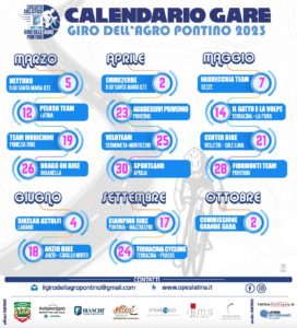 Ed allora vediamo insieme quali saranno gli appuntamenti domenicali che interesseranno il tour del circuito Giro dell’Agro Pontino 2023.