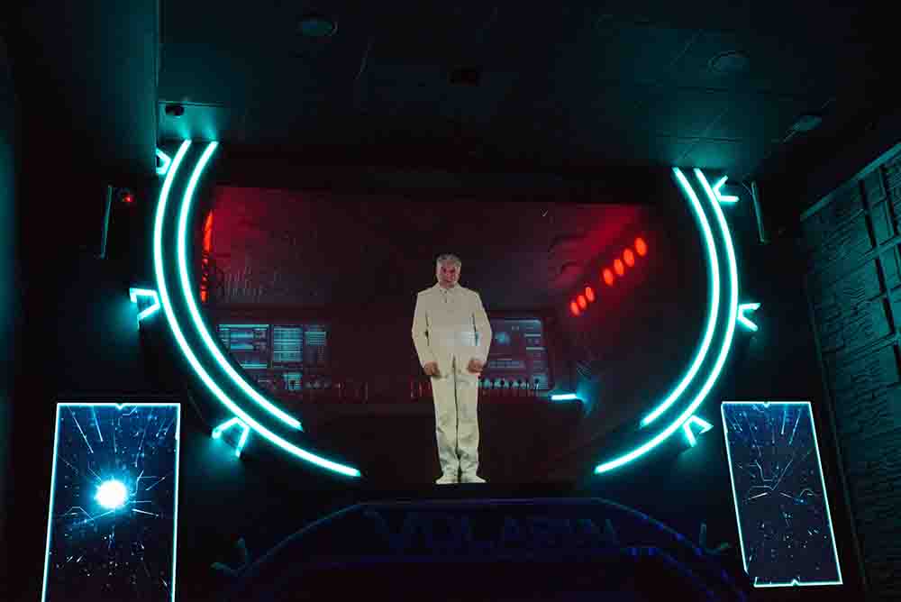 Il viaggio degli ospiti comincia a terra, all’interno di un mega supercomputer. Siamo al cospetto dell’intelligenza artificiale più avanzata che ci guida tra i segreti degli effetti speciali del cinema: è D.I.O., il Digital Intelligence Officer.