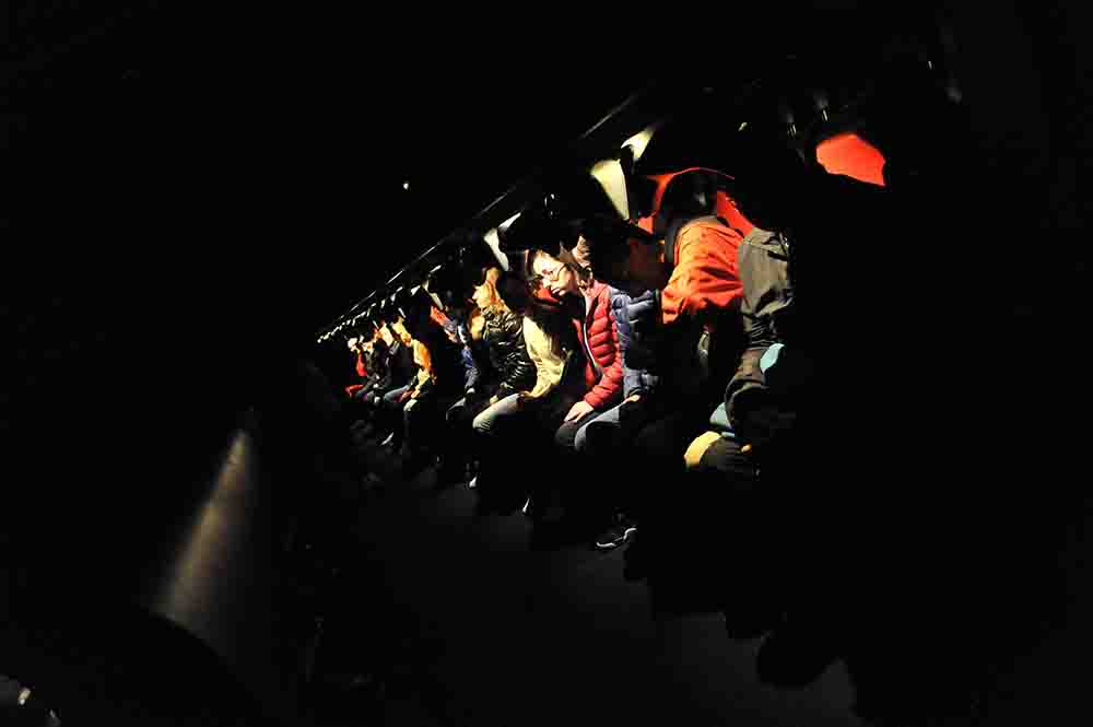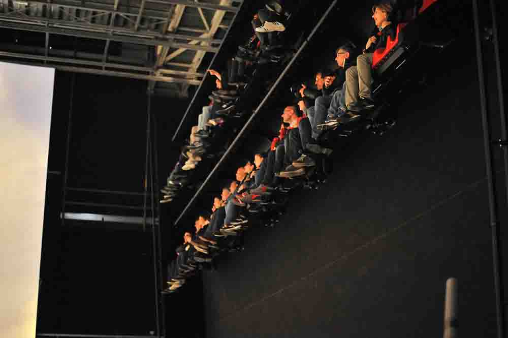 Appena lo spettacolo ha inizio il pavimento sparisce e la motion platform inizia a muoversi.