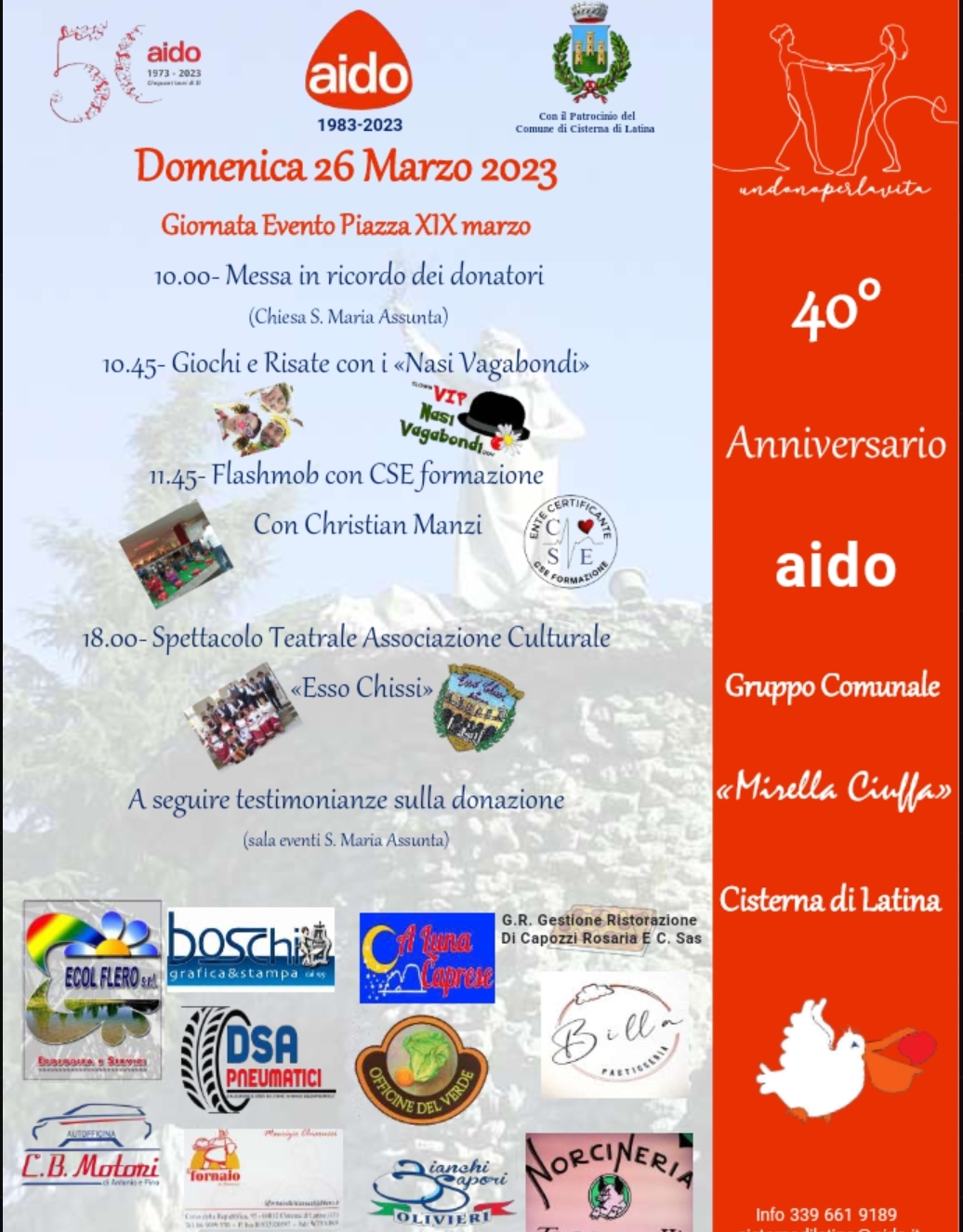 L’Aido Cisterna Odv domenica prossima festeggierà i suoi 40 anni di attività.