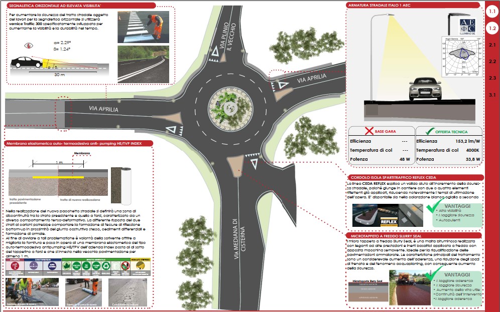 Tra le migliorie previste: illuminazione potenziata sulla corona della rotatoria e sulle aiuole spartitraffico per una maggiore sicurezza notturna;