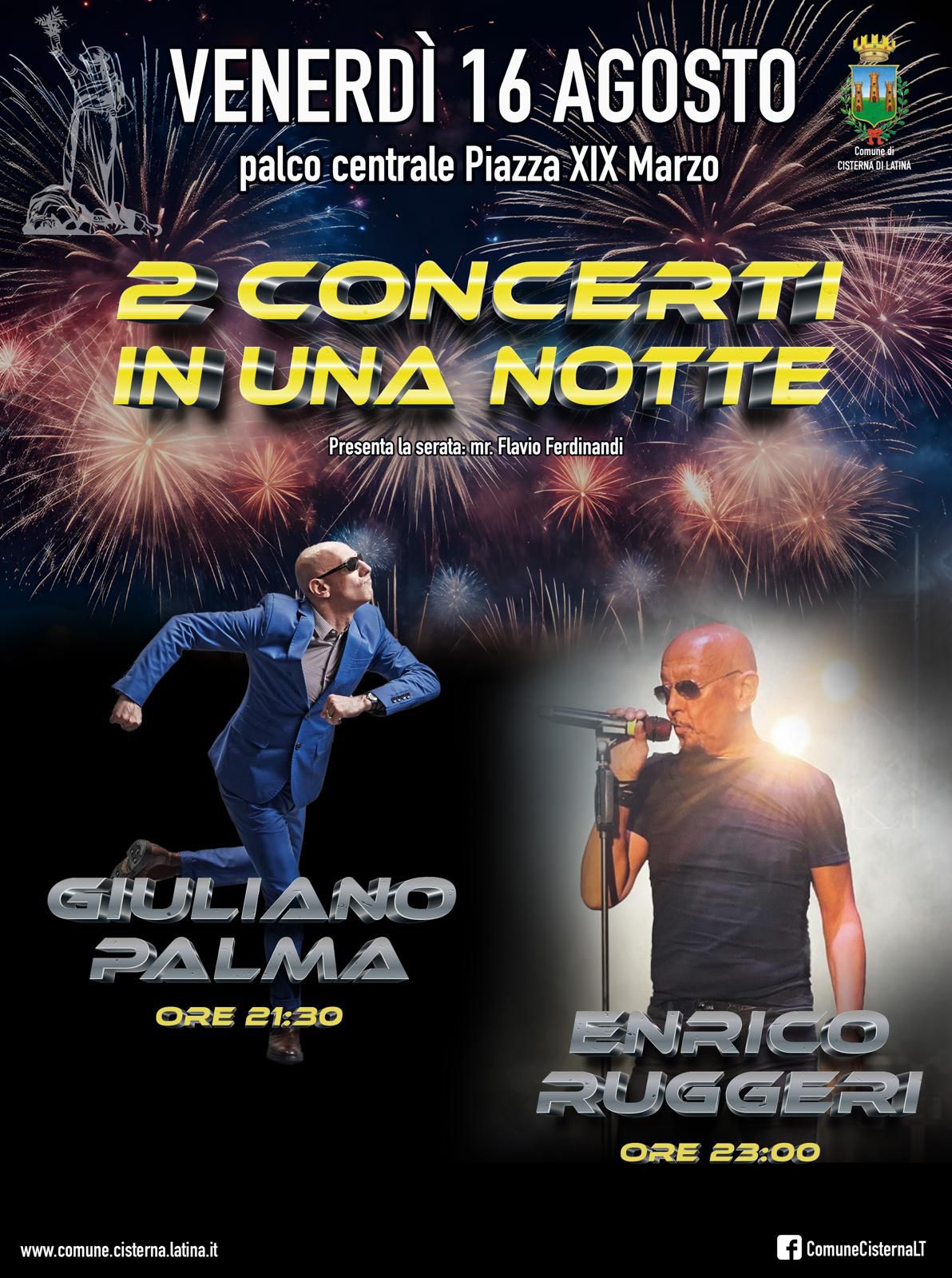 Il 16 agosto sarà la volta del doppio concerto: sul palco centrale allestito in Piazza XIX Marzo, che ha consentito all’Amministrazione comunale che la festa restasse al centro come vuole la tradizione e di non spostarla in altra area, si esibiranno alle ore 21:30 Giuliano Palma e alle ore 23 Enrico Ruggeri.