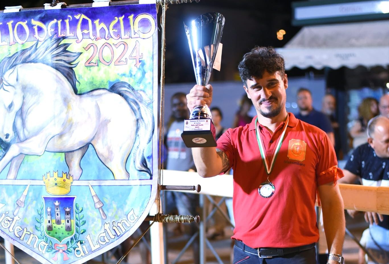 Massimiliano Lutero di Sezze è il primo classificato con tre anelli centrati al Palio dell’Anello di Cisterna di Latina. Segni invece è la squadra che ha totalizzato più punti e per questo si è aggiudicata l’artistico stendardo realizzato da Maria Pia Biagini.Cavaliere anello