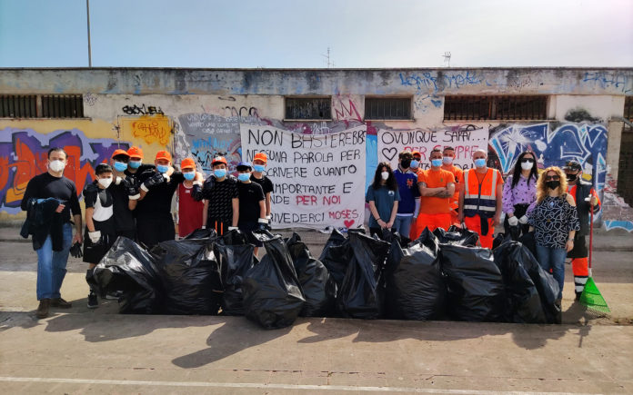 Nei giorni scorsi sono stati messi in sicurezza i locali un tempo adibiti a spogliatoio, così questa mattina gli Amici di Moses, con l’assistenza degli operatori della Cisterna Ambiente, e la partecipazione di alcuni amministratori, hanno rimosso alcuni rifiuti e vegetazione presente nell’area dove sono stati esposti degli striscioni in ricordo del giovane scomparso.