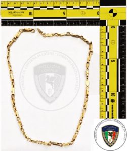 Immediate le ricerche, avviate con pattuglie e con l’analisi delle immagini della videosorveglianza comunale, che hanno consentito di ottenere in breve tempo riprese nitide dei tre presunti autori. Gli agenti li hanno individuati in via Monti Lepini: accompagnati in comando, hanno negato ogni coinvolgimento, ma durante la perquisizione è stata trovata, nascosta nella tasca interna del giaccone di uno di loro, una collana in oro massiccio del valore di circa 4mila euro, riconosciuta dalla vittima grazie a una foto inviata.