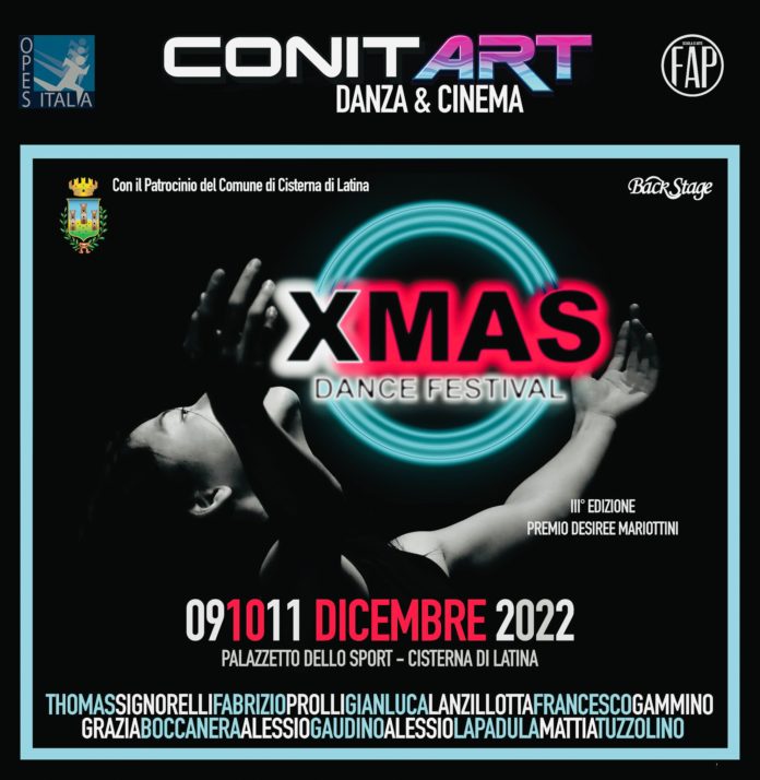 XMAS Dance Festival è un contest Nazionale di danza, organizzato dalla scuola di Formazione Artistica Professionale di Cisterna (Fap) in collaborazione con la scuola d’arte Non Solo Danza di Latina (NSD), con il patrocinio del Comune di Cisterna di Latina e i partners ufficiali CONIT srl e OPES Organizzazione Per l’Educazione allo Sport di Latina. Xmas Dance Festival è parte di CONITArt, evento che comprende anche Acting Professional Project. CONITart nasce dalla collaborazione tra FAP, NSD e CONIT srl. Il concorso vedrà avvicendarsi, otto fra i più popolari coreografi del momento per una vera e propria festa della danza che durerà tre giorni.
