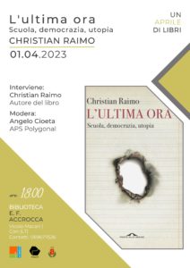 Christian Raimo, presenterà presso la Biblioteca Elio Filippo Accrocca di Cori, il suo ultimo libro, dal titolo “L’ultima ora: scuola, democrazia e utopia”, sabato 1 aprire alle ore 18.