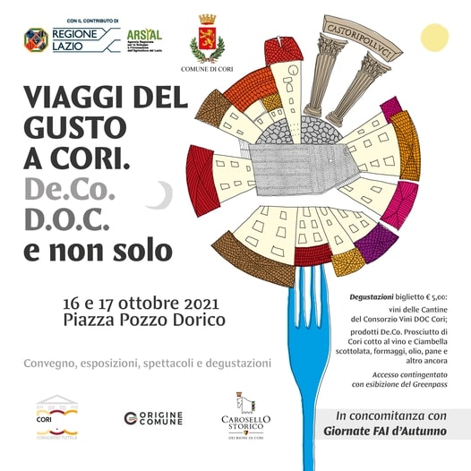 Il 16 e 17 ottobre si svolgerà i “Viaggi del Gusto a Cori”, presso piazza Pozzo Dorico, due giornate dedicate alle eccellenze e ai prodotti locali, con il contributo della Regione Lazio e dell’Arsial e la collaborazione del Consorzio Volontario per la Tutela e la Valorizzazione dei Vini Doc Cori e dell’Ente Carosello Storico dei Rioni di Cori.