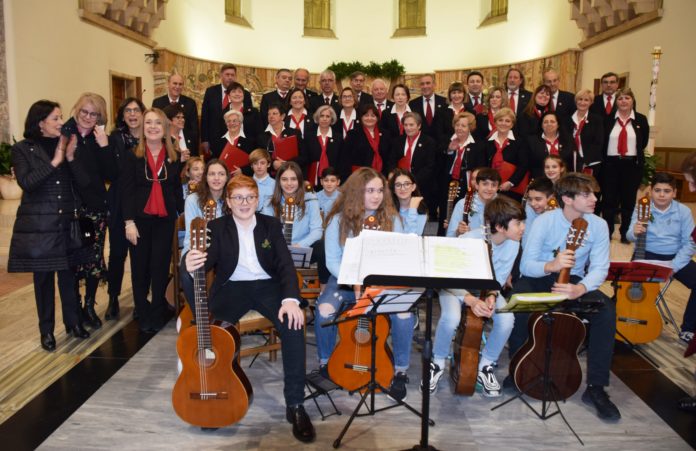 Quest’anno, per fare memoria degli 86 anni della città di Latina, la Corale ha realizzato una speciale collaborazione con l’Istituto Comprensivo Alessandro Volta in particolare con gli alunni dell’“Ensemble CordInsieme”, tutti ragazzi dai 10 ai 14 anni che studiano la chitarra classica nel corso ad Indirizzo Musicale della scuola secondaria. Dopo la celebrazione infatti i ragazzi hanno suonato per accompagnare “Aspettando il Natale” una “chermese” di canzoni antiche e della tradizione Natalizia che il coro ha dedicato a tutti i presenti per creare un’atmosfera gioiosa e di sincero entusiasmo per lo scambio degli auguri con tutti gli intervenuti.